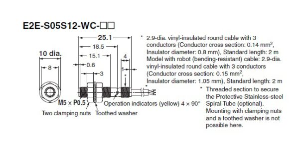 Kích thước cảm biến E2E-S05S12-WC-C1