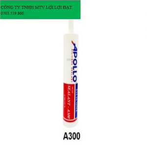 là chất trám trét dạng axit một thành phần có độ đàn hồi cao, có thể chịu được những điều kiện nhiệt độ khắc nghiệt, độ ẩm Ozon và tia cực tím. APOLLO Sealant A300 không bị mất màu, rạn nứt khi sử dụng ngoài trời, có khả năng kết dính được hầu hết các chất liệu khi được xử lý thêm một lớp sơn lót thích hợp. APOLLO Sealant A300 đặc biệt thích hợp để dán các bể cá bằng kính. APOLLO Sealant A300 đáp ứng các tiêu chuẩn sau: ASTM C 920-01 Type S, Grade NS, Class 12½, GB/T 14683-93 8020 G, N Keo Silicon A300 là loại keo dán có độ đàn hồi cao, độ bám dính cực nhanh